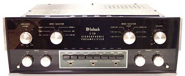 前級擴大機在整體Hi-Fi音響器材中,佔有非常重要的地位,在後級擴大機「已沒有問題」的情況下,各廠商莫不致力於前級擴大機的設計與改良。雖然製造觀念或有些不一樣(有的要求複雜,有的要求簡潔),但極低的失真、極高的訊號雜音比、寬廣的頻率響應卻是廠家們一致努力所追求的目標。由於SAE、Audio Reserch、Amcron、Mark Levinson......等的鑽研求進,確實產生了一些號稱「現階段最高技藝」的前級擴大機,而McIntosh C-28就是其中之一。