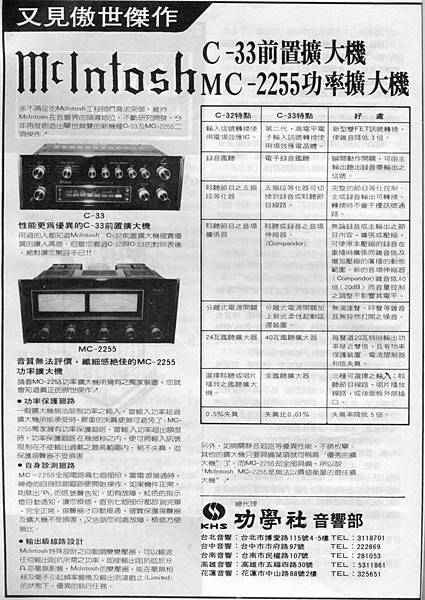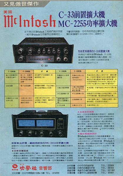 資料來源:音響技術第77期MAY 1982 McIntosh C-33/